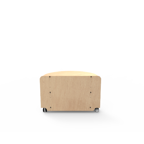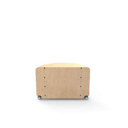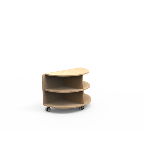 Semi-circular shelf that bridges two shelving runs back-to-back.