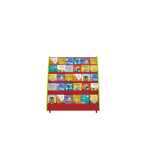 Wide display unit designed to hold oversized picture books and story collections.
