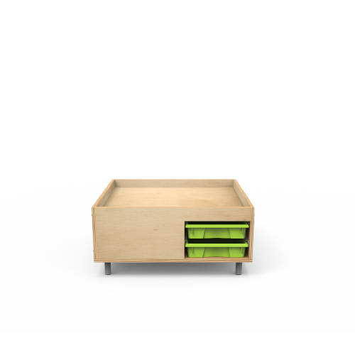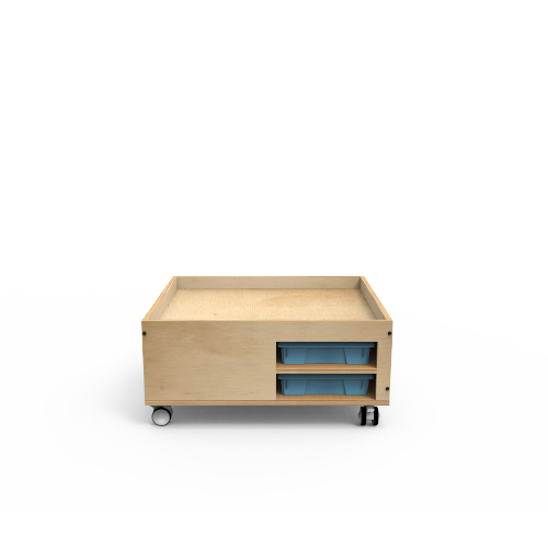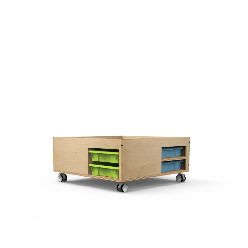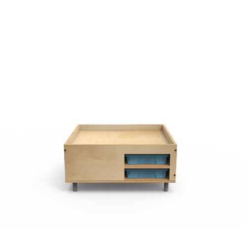 Multi-level shelving and surfaces to support building blocks, manipulatives, and STEM kits.