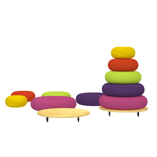 Foam-filled mini cushions designed for compact seating or layering.